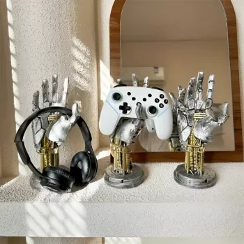Cyberpunk Mechanical Arm Desk Stand – Game Controller & Headphone Holder